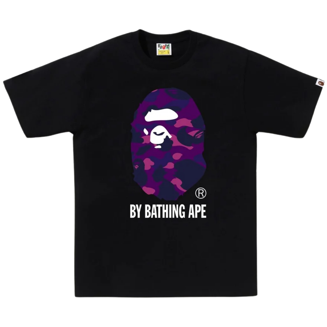 BAPE Color Camo By Bathing Ape Tee Black/Purple to klasyczny t‑shirt japońskiej marki A Bathing Ape z kolekcji Color Camo. Na froncie masz duże logo Ape Head w fioletowym kamuflażu oraz napis BY BATHING APE, dzięki czemu koszulka jest rozpoznawalna z daleka.