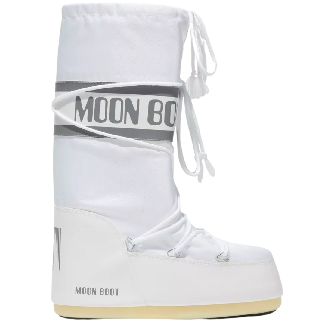 Białe Moon Boot MB Icon Nylon to damskie buty zimowe z nylonowej cholewki. Model łączy klasyczny kształt śniegowców z nowoczesnym materiałem. Biały kolor pasuje do zimowych stylizacji damskich.