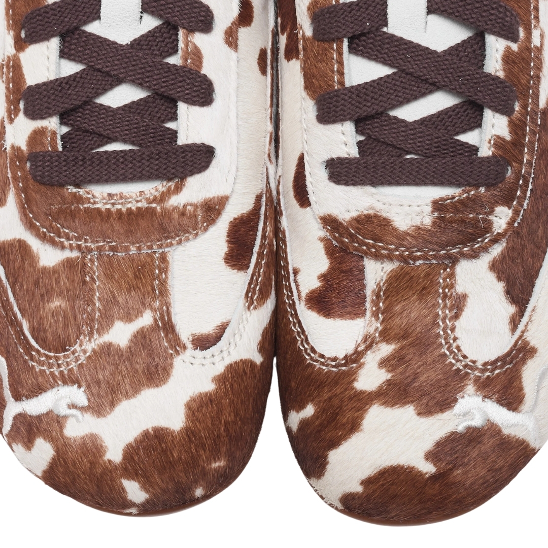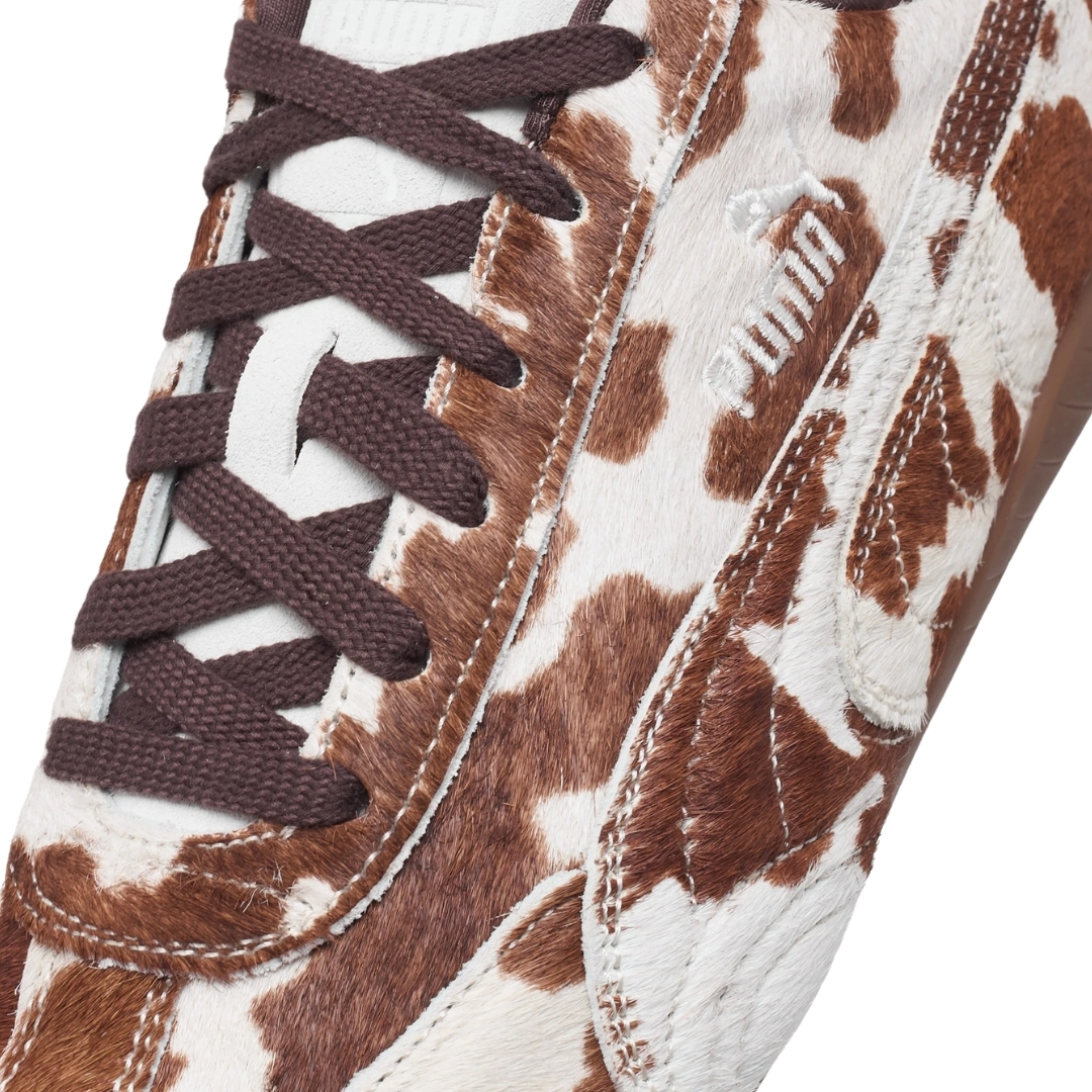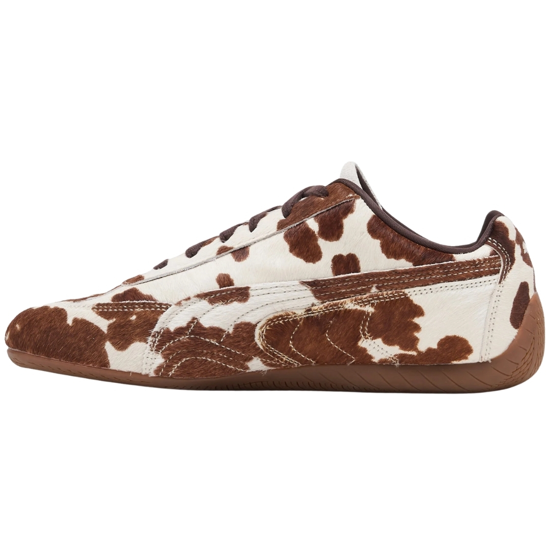 Puma Speedcat Cow Print to klasyczne buty rajdowe przerobione na streetwear. Smukły, niski profil i krowi wzór robią robotę, ale dalej da się w nich normalnie chodzić na co dzień.