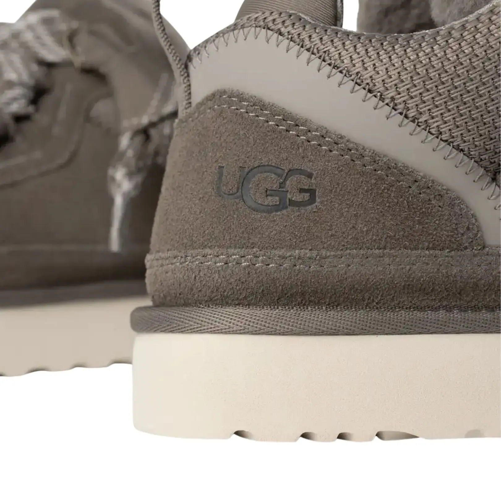 UGG Lowmel Smoke Plume damskie to stylowe sneakersy łączące sportowy design z luksusowym komfortem. Cholewka wykonana z połączenia zamszu oraz recyklingowanych materiałów balistycznych w odcieniu dymnego brązu (Smoke Plume) nadaje im unikalny charakter. Wnętrze wykończone UGGplush™ — miękką, izolującą mieszanką wełny upcyklingowanej z tencelem zapewniającą ciepło i oddychalność. Podeszwa wykonana z lekkiej i sprężystej pianki Sugarcane EVA™ gwarantuje komfort i wsparcie na każdym kroku.