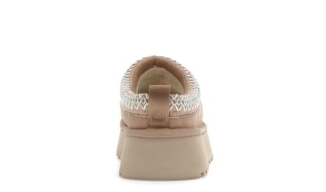 UGG Tazz Slipper Sand (Women’s) to połączenie domowej wygody i streetwearowego stylu w naturalnym, piaskowym odcieniu Sand. Cholewka wykonana z miękkiego zamszu oraz wykończona plecionym paskiem UGGbraid™ z recyklingowanych włókien nadaje kapciom charakteru. Platforma o wysokości 1,75 cala subtelnie unosi stopę, zaś wnętrze wyściełane luksusową mieszanką UGGplush™ (80% wełna owcza z recyklingu + 20% TENCEL™ Lyocell) zapewnia ciepło oraz oddychalność. Lekka podeszwa Sugarcane EVA lub Treadlite by UGG™ gwarantuje sprężystość i wsparcie na każdym kroku, co czyni model Tazz idealnym zarówno do noszenia w domu, jak i na krótkie wyjścia poza dom.